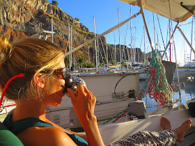 We worden er gek van. Al dagen horen we een geluid en we weten maar niet wat het is. In eerste instantie dachten we aan een kraakje in de mast veroorzaakt door de vele windvlagen van de afgelopen dagen. Jeetje, wat een pokkenweer hebben we gehad. Het gierde door de wanten met als dieptepunt een dag non- stop regen. We waanden ons voor even weer in Nederland. Cocoonen, dat hebben we gedaan. Filmpje kijken en Grey's Anatomy ( zit al in seizoen 5...), theetje erbij en lekker onder een plaid! Er stond eergisteren zelfs zuurkoolstamppot op het menu. Yummy!
