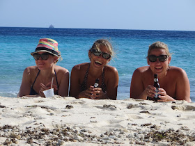 Mijn vriendinnen kennen me als geen ander. En ook dat is heel fijn. We vullen elkaar goed aan. Sanne, de teamcheck houden we erin. Waarom zou je alles zelf checken als je die zware (ahum) taak met een vriendin kan delen? Han liet haar kleine grote hart spreken en omarmde ons allemaal in haar appartement en gezin. Uren hebben we bij haar in zwembad gelegen, op het terras gehangen en genoten van elkaars geouwhoer. Voor het eerst zag ik 'mama Hanneke' en 'papa Robin'. Een perfect team dat Sammie zelf het leven laat ontdekken. Niet overbezorgd en niet geleid door een stramien over hoe opvoeden zou moeten. Door grenzen aan te geven en een warme basis te vormen, stapt Sam onbevangen het leven in. Mooi! Ook hebben mijn vriendinnetjes me verrast. Hanneke blijkt een echte vogelspotter te zijn! Wie had dat gedacht? En Sanne is glansrijk geslaagd voor de ultieme globetrotter-test: slechts bepakt met 1 gedeelde backpack voor haar en Joos, met makkelijk zittende casual kleren en zonder hakken kwam ze hier aan. Au naturel bracht ze de week door in bikini en hoedje en paste ze zich zonder moeite aan aan het leven aan boord. Geen douche, haren wassen in het zoute water achter Puff, een toilet met handpomp, leven op 30 vierkante meter, Sanne was all-in!