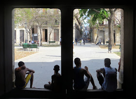 We staan in de rij bij het wisselkantoor. De lokale bevolking heeft hun eigen munteenheid 'modena nacional'. In de volksmond ook wel CUP genoemd. Voor de toeristen is er een andere munteenheid, de CUC. Die staat ongeveer gelijk aan een US dollar. Wij willen CUC's in CUP's wisselen. "Ultimo?", vraagt een meneer naast me. "Uhm.Sí!... ik ben de laatste". In Cuba vraagt men gewoon wie de laatste in de rij is. Zo hoef je maar één persoon in de gaten te houden. Voorkruipen gebeurt hier niet. Tenzij je een klein kind bij je hebt of wanneer je ouder bent. Dan mag je overal vooraan aansluiten. Na het wisselen gaan we op weg naar de gevangenis. We gaan te voet en laten alle indrukken op ons inwerken. De stad is heel netjes aangelegd en goed onderhouden. Goede wegen en mooi aangelegde pleinen versierd met veel marmer en grote bomen voor het creëren van schaduw. Op een van de pleinen zien we tientallen mensen onder de boom staan met een mobieltje in de hand. Dit moet een internetpunt zijn. Internet is in Cuba niet in huis te krijgen of op je mobiel. Er zijn wél openbare internetpunten waar je kan inloggen met je mobiele apparaat. Daarvoor koop je internetkaarten. Deze worden op naam verstrekt zodat de overheid bij iedereen een oogje in het zeil kan houden. Communisme. De kaarten kosten 1 CUC oftwewel 1 USD per uur. Een modaal inkomen in Cuba is 12 tot 18 CUC per maand. Internet is dus een zeer kostbaar goed. Toch zien we veel smarttelefoons en het plein staat vol met mensen. Later zien we dat er vooral Chinese telefoons te krijgen zijn. Alles wat enigszins modern is, zoals electronica en vervoersmiddelen of landbouwwerktuigen, blijkt uit China of Rusland te komen.