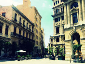 “Proost! Op Havana!”, zegt Leon. “Proost”, beaam ik als ik mijn mojito ophef. Daar zitten we dan, op Plaza Vieja. Sublieme mojito. Kaasplankje erbij. De Cubanan blijken goede kaas te produceren. Een son-bandje speelt typisch Cubaanse liederen, terwijl de zon hoog aan de hemel staat. Het plein blaakt in het zonlicht. We zijn omringd door sierlijke bouwwerken met pilaren en protsige balkons in de vrolijkste kleuren roze, blauw, groen en geen. Na de mojito lopen we verder en ontdekken Plaza de Armas waar oude propagandistische literatuur verkocht wordt uit de tijd van de revolutie (eind jaren vijftig, begin jaren zestig). Biografieën van Fidel Castro en Ché Guevara zijn op iedere straathoek te koop. We ontdekken bouwwerken uit de 18e en 19e eeuw, gebouwen en kathedralen die niet zouden misstaan in hartje Parijs of Barcelona. De Catedral de San Cristóbal torent met haar torens in Gotische bouwstijl boven de stad uit. “Taxi? Taxi?”, hoor ik achter me terwijl er een bel rinkelt. Het is een fietstaxi op zoek naar een klant. Het is moeilijk te bevatten dat we nog steeds in de Carieb zijn. Een stuk historie dat tot leven komt. We laten ons verleiden door de romantiek van de stad.