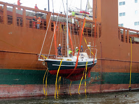 geen grotere luxe dan je boot op een transportschip zetten naar Europa en zelf