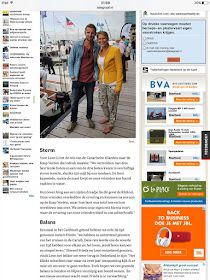 Afgelopen week waren we op de HISWA. We ontmoetten er Joshua en Katia. Joshua zeilt al 5 jaar over de wereld en schrijft voor de Telegraaf Vaarkrant. Het leidde tot een leuk gesprek en een kort stukje over ons in de Telegraaf. Een kort stukje met voor de oplettende lezer een groot nieuwtje :-)...